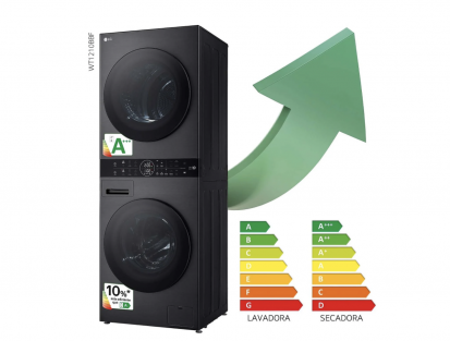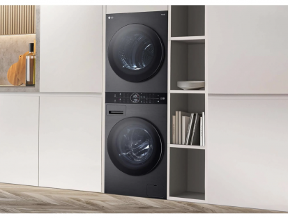 LG Wt1210bbf washer-dryer in a graphite inox finish combines a 12 kg washing capacity with a 10 kg drying capacity in a compact 2-in-1 unit.