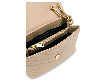 Saint Laurent Loulou quilted shoulder bag Did you know Loulou in Latin means "light"? Pretty accurate, as we'll be traveling light with this beige Loulou shoulder bag - we'll only be carrying our snacks, a copy of our favourite book and our big headphones in it.