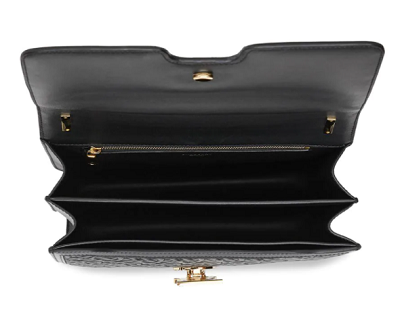 Lo más destacado negro piel de cordero placa con el logo en tono dorado correa de hombro de eslabón de cadena deslizante tapa abatible con cierre magnético bolsillo interno con cierre de cremallera compartimiento dividido Hecho en Italia