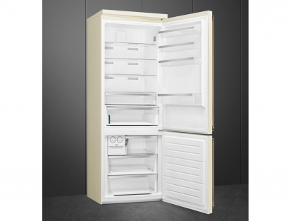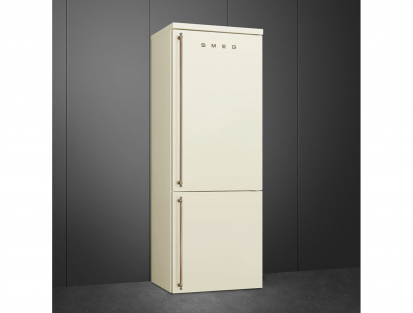 Yükseklik 195,5 cm ve kapasite 481 L; krem rengi yüzey, yaşlanmış pirinç detaylarıyla mutfağınıza belirgin bir kolonyal görünüm kazandırıyor.