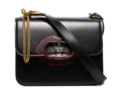 Con una tapa plegable con cierre a presión, múltiples compartimentos interiores, un bolsillo interno con cremallera, un bolsillo interior, un parche con el logo interno, herrajes en tono dorado, una cita impresa en el interior, un parche con el logo en la parte posterior, un estampado de labios rojo y blanco en la parte delantera y una cadena y correa de cuero ajustable.