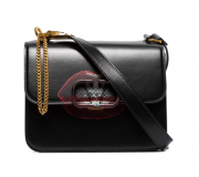 Tome este bolso de cuero negro Valentino Garavani VSLING, diseñado en colaboración con Undercover, que revela una cita poética cosida en el forro interior.