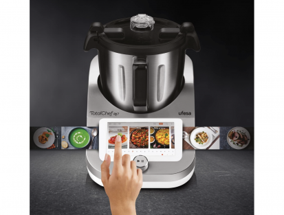 Το Ufesa TotalChef RK7 είναι ένα έξυπνο ρομπότ κουζίνας με ισχύ 2000 W και ένα αδιάβροχο δοχείο 4,5 L, προσφέροντας μέχρι 30 λειτουργίες για μαγείρεμα, ζύμωμα, ανάμειξη, αργό μαγείρεμα, ατμό, bain-marie, κονφιτ, γιαούρτι και πουρέδες.