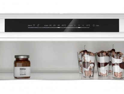 It operates quietly at 34 dB and has climate class SN-ST, combining practical integration with efficient performance for modern kitchens.