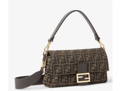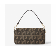 The Fendi Baguette Jacquard FF Brown Handbag is a medium sized baguette bag launched in 1997 that became a cult icon.