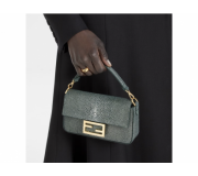 Iconic Fendi Baguette Mini handbag crafted in exotic stingray leather in a smoky green shade, handmade.