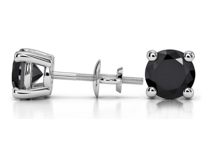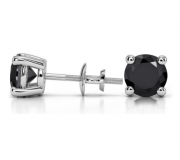Round Black Diamond Stud Earrings In White Gold (4 Ctw) These modern round cut diamond stud earrings are held in a white gold four-prong setting.