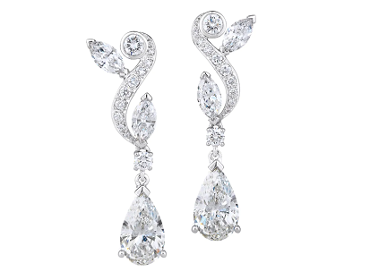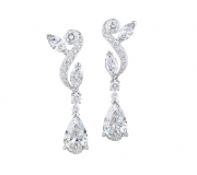 These enchanting 18kt white gold Adonis Rose earrings from De Beers feature diamond thread pavé that draw the eye along the gleaming stem of the rose, mirroring the form of the rose’s leaves and two drop 1.0ct pear-cut diamonds.
