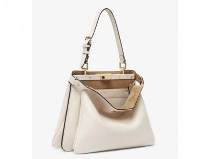 Fendi Peekaboo Soft Medium White Designer Handbag epitomizes the house's artisanal mastery and creative vision.