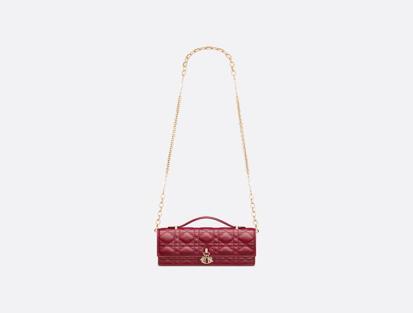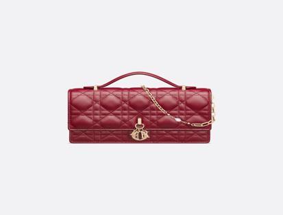 Crafted in cherry red lambskin, it features a Cannage-front and a flap with D.I.O.R.